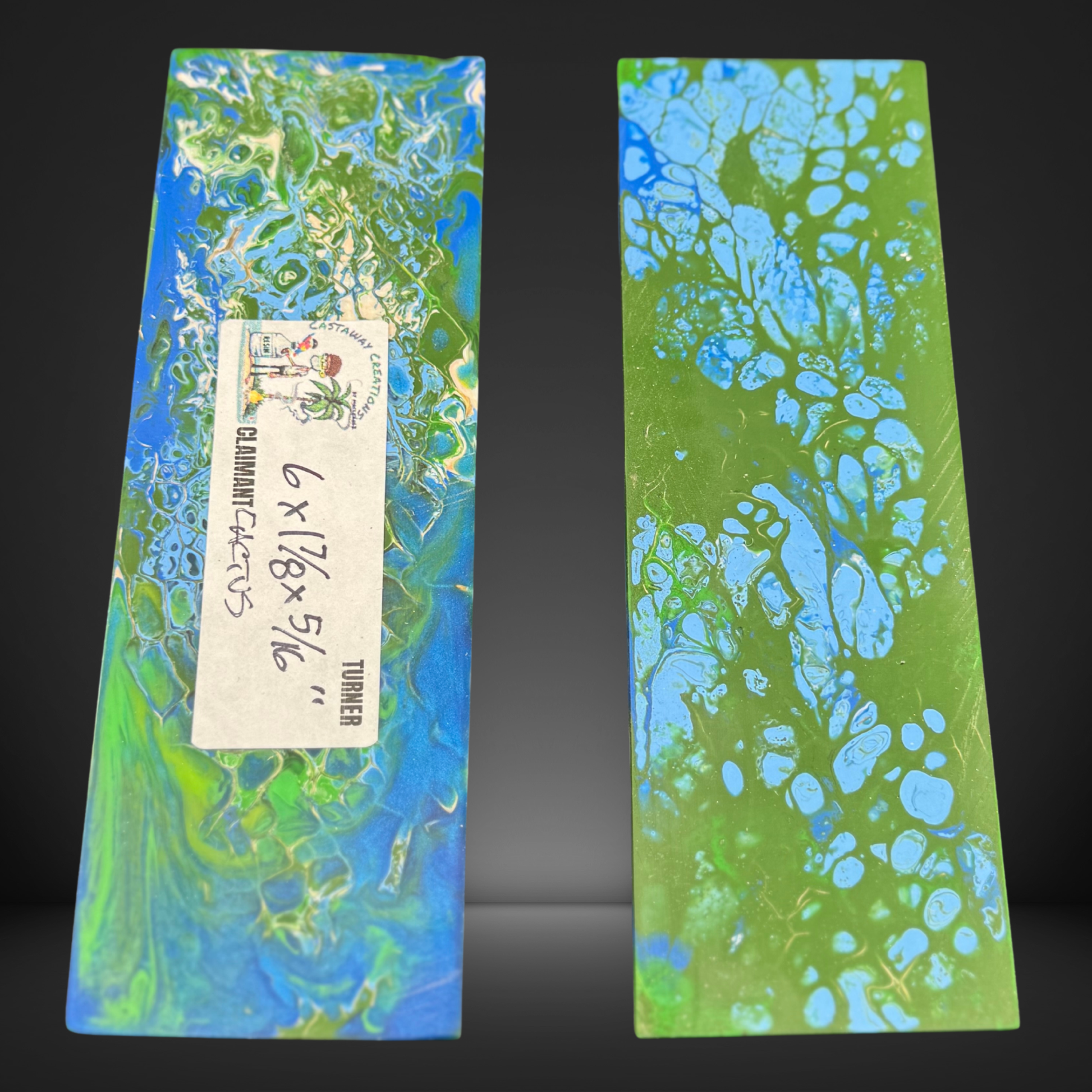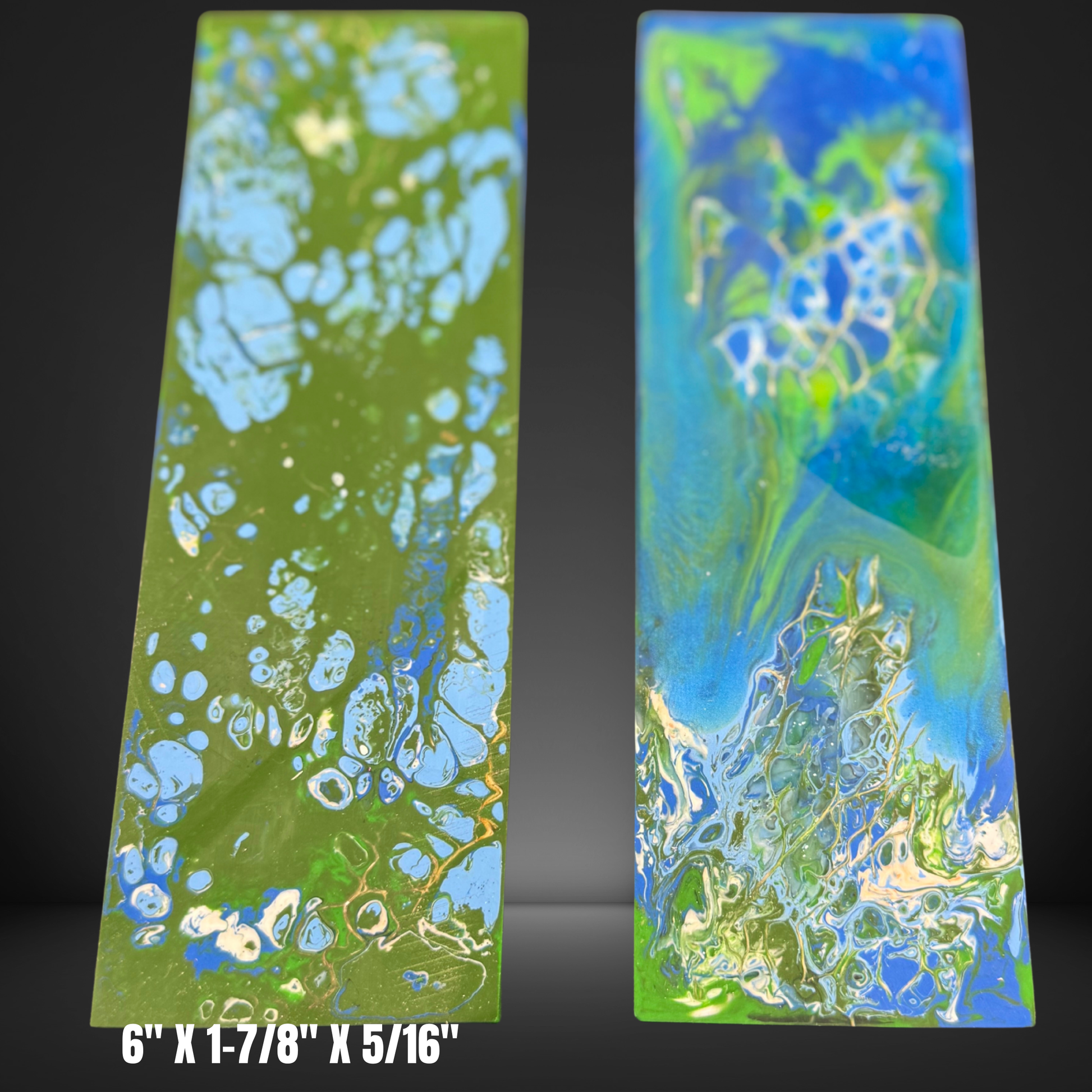 This is a hybrid knife scale made with stabilized cactus skeleton and Alumilite clear resin.