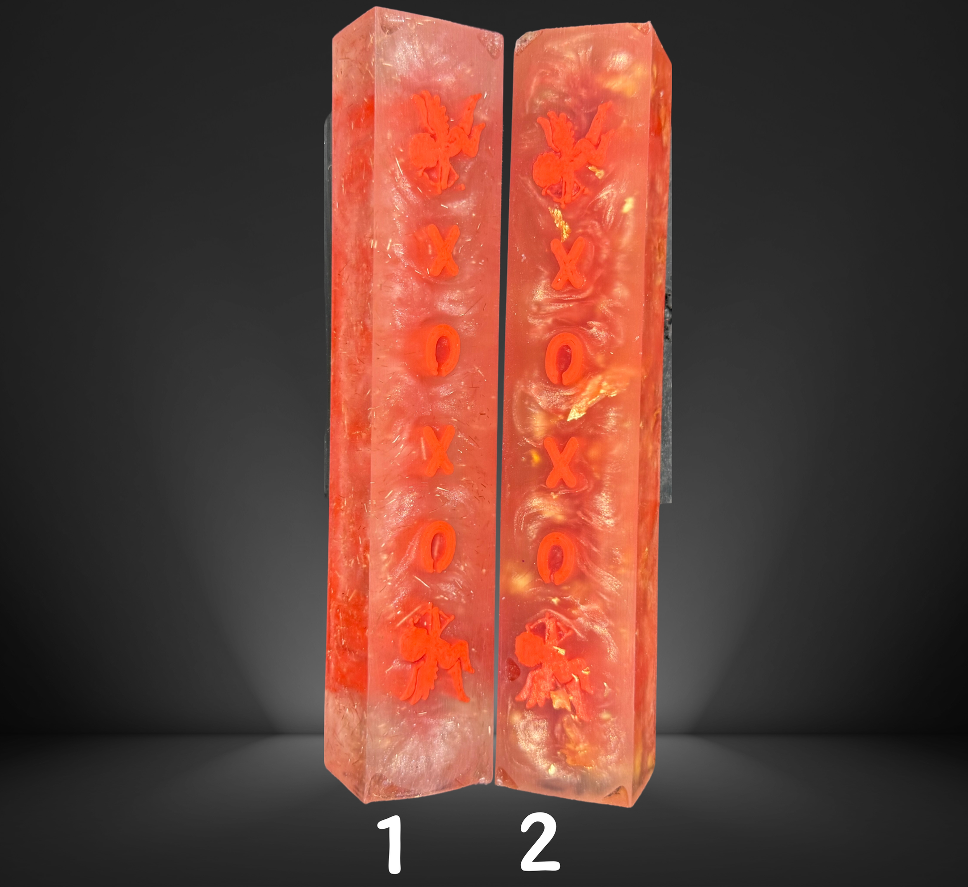 Blanks measure approximately 5.5"X.88"X.88" and are made with Alumilite Clear resin. This design is printed with PLA.