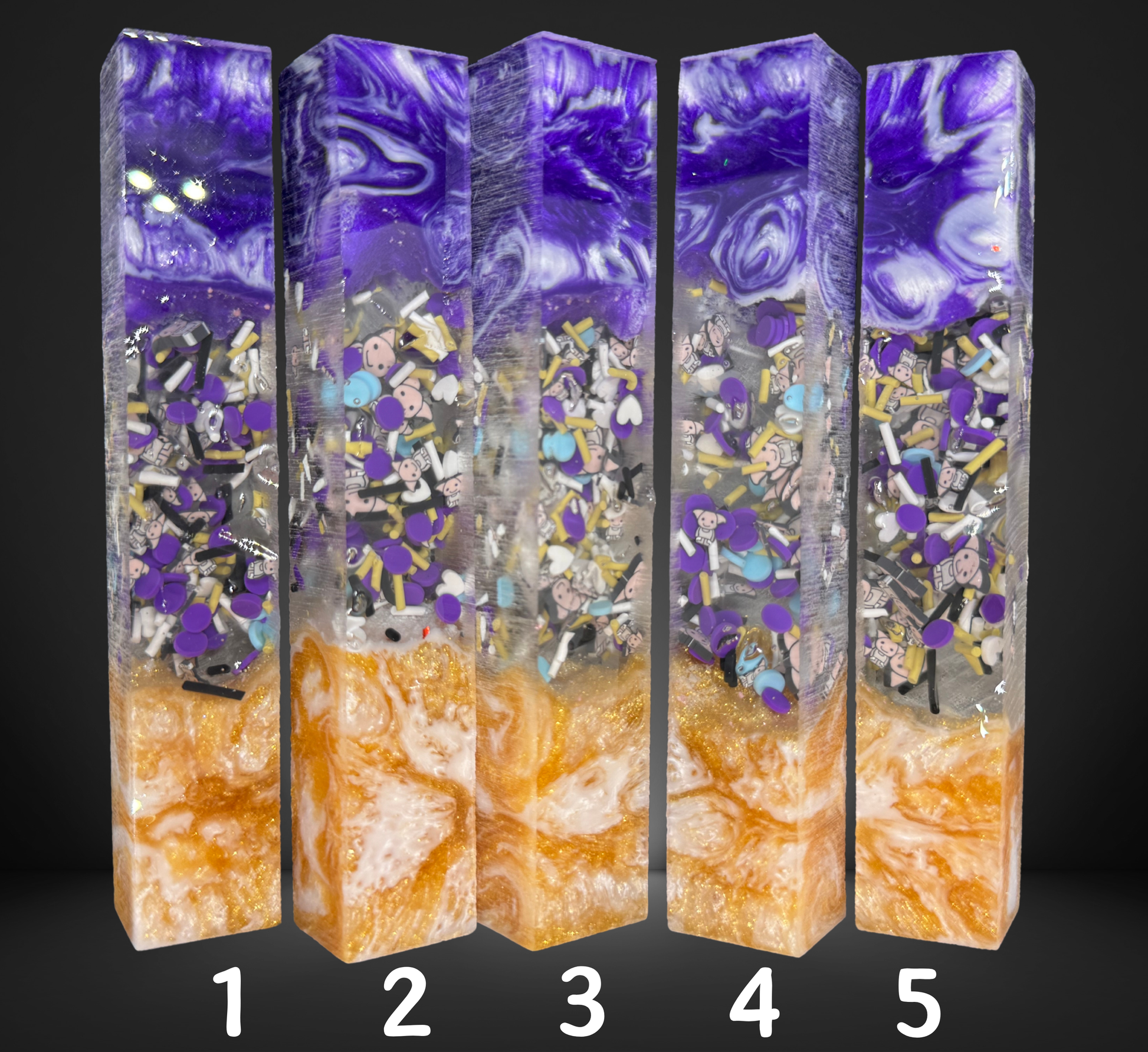 Colors may vary slightly due to lighting, screen display, and the polishing process; finished pens often appear more vibrant than raw blanks. Swirl patterns and 3D printed details may differ once turned, as inner resin layers and design edges change during shaping.