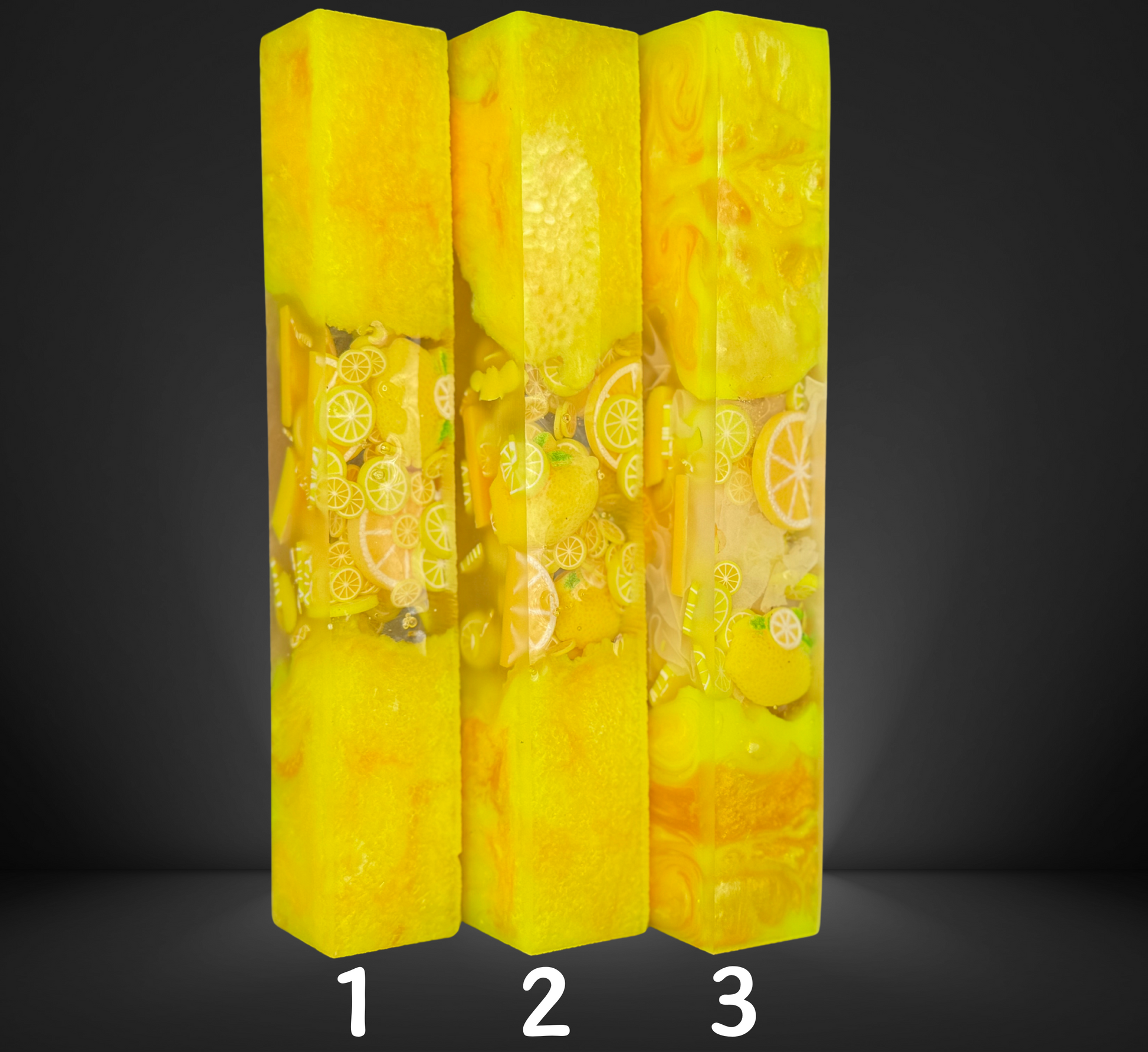 Blanks measure approximately 5.5"X.88"X.88" and are made with Alumilite Clear resin.