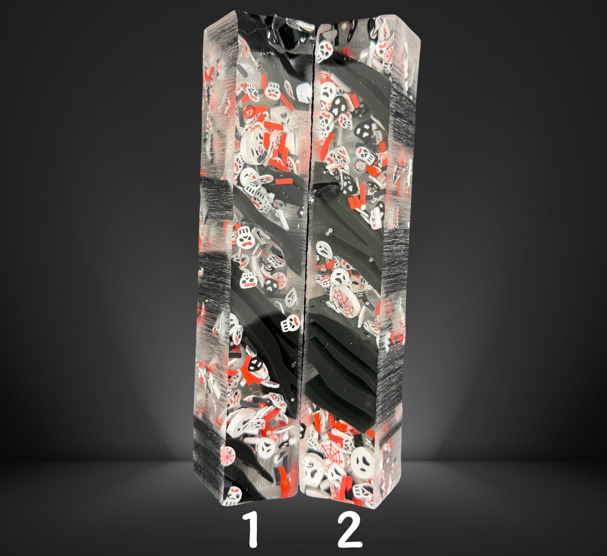 Blanks measure approximately 5.5"X.88"X.88" and are made with Alumilite Clear resin. This blank is made with resin 3d prints.